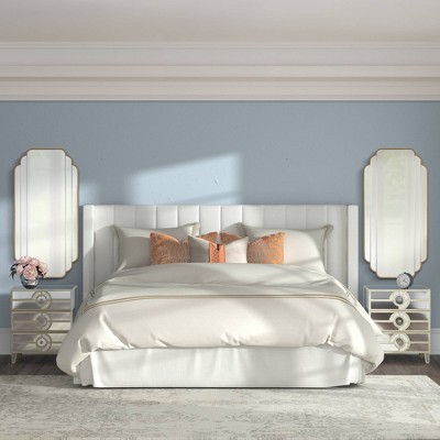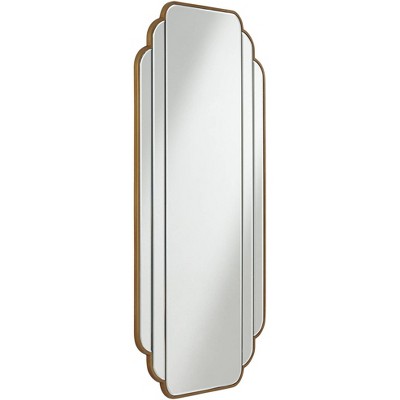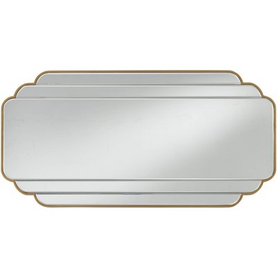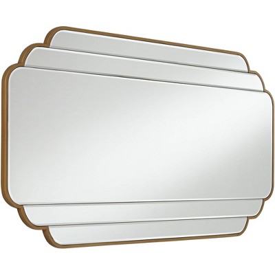 Follow the alluring character of a modern mirror offering a chic addition to upscale decor. The glam-inspired Symphony mirror by Noble Park adds extraordinary sophistication to a contemporary entryway, bedroom, or main living space with a functional and fashionable decorative element. A pane of beveled glass with a scalloped silhouette is nestled in an MDF frame made with a gorgeous matte brush gold finish. May be mounted vertically or horizontally.