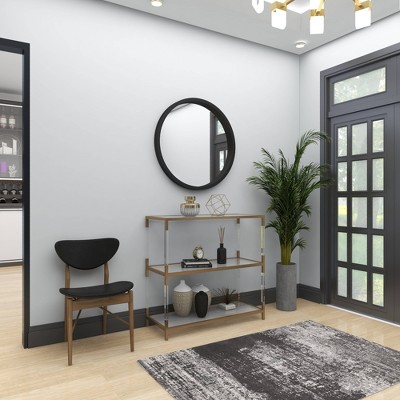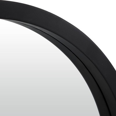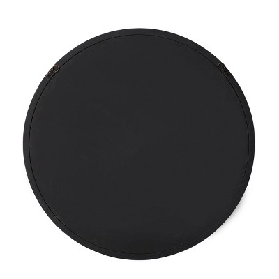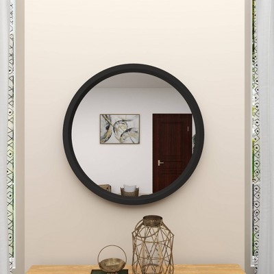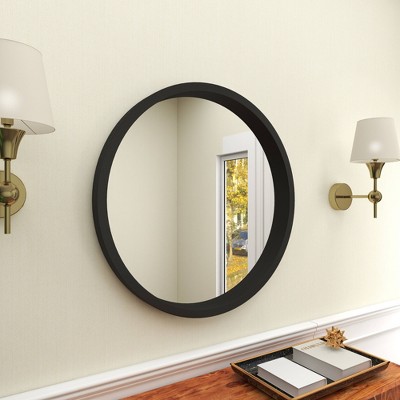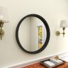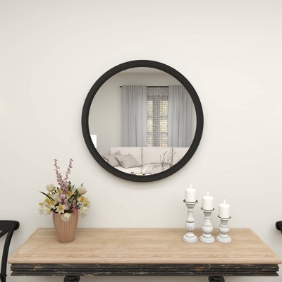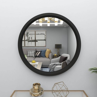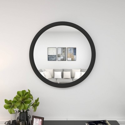 - This contemporary wall mirror features a minimalistic black-framed round mirror design