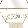Create an dazzling focal point on your walls with this exquisite wall mirror, and level up your entryway, dining room, bedroom or living room. It makes a great centerpiece over your sofa or console table, or in your dining room or bedroom. This item comes shipped in one carton. Easy-to-hang feature with its hoop hardware with string look on top. Suitable for indoor use only. This set includes 2 geometric shaped wall mirrors. Inspirational vibes from the words “DREAM” and “LOVE” on the frame. Contemporary design.
