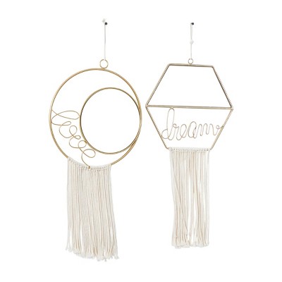 - This stylish set of dreamcatcher-inspired wall mirrors showcase a round and a pentagon-shaped mirror framing with string tails at the bottom