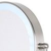 In a brilliant satin nickel finish, this versatile cordless wall mount mirror has all the features you need to look your best. The double sided mirror face offers standard viewing on one side and 10x magnified viewing on the other. The 360 degree swivel, tilting head design allows you to easily position the mirror. The round LED light provides generous illumination. Made in the U.S.A.