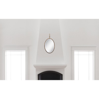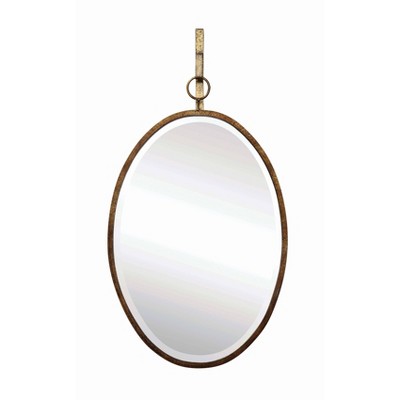 This vintage-inspired oval mirror has an antiqued gold finish that is reminiscent of years past. This unique mirror hangs from its own decorative bracket. Display this mirror in a foyer, bedroom, powder room, or alcove. Its beautiful color will easily add a touch of elegance to your home or office space.