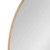 Create a decadent wall display using the lovely Rollo mirror from Kate and Laurel. The Rollo mirror takes inspiration from minimalist design techniques, utilizing a geometric round shape to command attention in any room. The frame itself was made from a robust iron material, giving the Rollo a refined detailing that will last for multiple years of display. The stand out gold finish on the iron frame makes this mirror capable of blending into various rooms. Hang the Rollo mirror above our fireplace, over a sink or vanity, or a console table in your entryway. Adding a mirror to your home creates a sophisticated wall display and draws in more light and making it appear more dimensional and open concept. The Rollo overall wall display dimensions are 22 inches wide by 22 inches tall, making it a dynamic and eye-catching statement for any room of your modern home. Hang this simple yet alluring wall mirror in a matter of seconds with the metal keyhole hanger attached to the back of the frame.