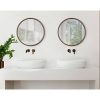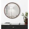 The Travis decorative wood mirror is a beautifully unique accent piece to add to your home decor. It features an elegant round shape and a robust wooden frame to create an eye-catching conversation piece for any room. Hang this mirror above a fireplace, over a sofa, or above your bedroom headboard for a stunning wall display. This mirror is also stunning as a vanity mirror in a master bath or powder room! The reflective mirror surface has a 20.5-inch diameter, and the outer dimensions include a 21.6-inch diameter and 1.5-inch depth from the wall. Adding a mirror to your home emphasizes its light sources and makes the space appear dimensional and vibrant. The mirror weighs 6 pounds, making it easy to move from room to room. Two metal D-ring hangers are attached to the back of the frame with a wire for easy wall display. This gorgeous wood contemporary modern wall mirror piece will be the perfect fit in your existing decor theme in any room of the home!