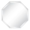 Decorating with mirrors is lots of fun especially when they come in a bold and versatile shape like the Kate and Laurel Rhodes octagon wall mirror. No matter what interior decorating style you want to go with, an octagon shaped mirror can bring added dimension. Not only can it be used as a much-needed accessory, but with a bit of imagination, it can become a real focal point of your home. The understated elegance of the thinly sleek frame enhances the smart bevel of the glass it surrounds and creates a modern take on a classic design. Used on its own or in combination with your other home decor items, this mirror is sure to fit in with your best look, creating an eye-catching exhibit of pure inspiration. The shape is a great way to break up the straight lines of a gallery display wall or just the right size for smaller wall spaces or even hang it directly above a sink making it perfect for a vanity. The outside dimensions of this octagon mirror are 24.75 x 24.75 inches. The inner mirror is exactly 24 x 24 Inches and the D-ring mounting hardware comes installed on the back, which will keep the mirror flat and secure.