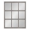 The simple elegance of the Hogan 9-pane wall mirror brings a timeless sophistication to your home. It’s the perfect piece to enhance and brighten a room in a beautifully understated way while adding a conversation-starting statement. The nine individually beveled mirrors within the windowpane frame create the illusion of outside while maintaining the cozy warmth of the inside. Constructed of solid wood, it is classically styled and durably built. This mirror comes with four D-rings installed on the back, positioned so that it can hang horizontally or vertically. Combine two or more of these mirrors above a couch or artfully hang in an entryway – it will not only visually expand a space but will also illuminate and define making the area lighter and welcoming. A mirror like this would work well above a kitchen table drawing the eye up and creating the feeling of height or just what a bedroom needs as a unique and exciting focal point. It’s a well-thought-out accent piece that can transform an ordinary room into a gorgeous, luminous space. The outside dimensions are 26 inches wide by 32 inches tall, and each mirror within the nine panes is 7 inches by 9 inches. The frame profile is 1.25 inches wide, and the inside sash bars are each 1 inch wide and about 3β’4 inch deep.