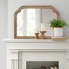 Lend a farmhouse-inspired touch to your walls with the traditional design of this French Country Mantel Wood Mirror from Thresholdβ’. Mounted on a sturdy wooden frame with decorative curved accents on top in a natural finish, this wooden wall mirror makes for a wonderful accent piece that seamlessly blends with your shabby-chic decor, and its reflective design helps brighten up any dull corner or space. Hang it over the fireplace mantel or in the hallway above the console for a stunning accent.