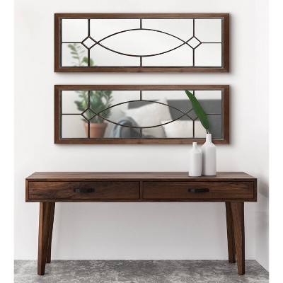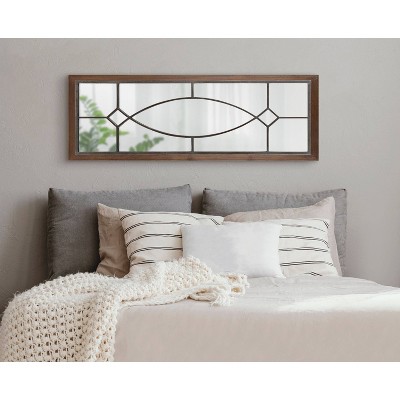 Indulge in a farmhouse aesthetic that transforms your home into a charming countryside chateau. The Bakersfield wall mirror takes inspiration from traditional window design features an inlay incorporating geometric shapes and elegant curvature. The metal inlay also has a vintage iron finish to deliver a texture reminiscent of decades of antiquity. The exterior frame is also made from a robust wooden material, creating a resiliency that will stay brand new for years of display. Adding a mirror to your home not only showcases your decorative aesthetics but enhances your space by drawing in more light, effectively making it appear more open and spacious. The Bakersfield mirror’s overall dimensions are 16 inches wide by 1 inch deep by 42 inches tall, creating a commanding farmhouse statement piece for any room of the home. Hang the Bakersfield wall mirror either vertically or horizontally, thanks to the convenient metal D-ring hangers that are securely attached to the back of its frame.