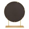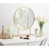 The Rouen mirror will make any desk like surface an instant vanity area for your morning or nighttime regime. Use as an accent for any room, whether you are looking for a mirror for your makeup area, bathroom or powder room, or decor for your dining room, living room, entryway console table or office. The frame and stand is constructed of all metal material and stands 22-inches high with an 18-inch diameter mirror. The base is 6-inches deep.