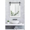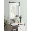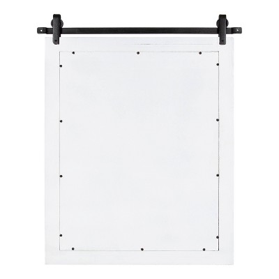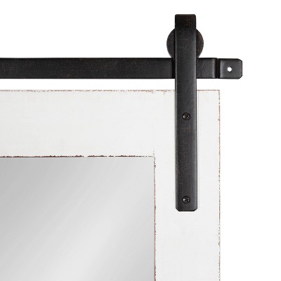 - RUSTIC FARMHOUSE MIRROR: The Cates mirror features a barn door-inspired design with a coastal white finish and black iron bracket inspired by sliding barn doors