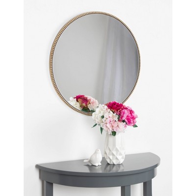 - The framed diameter of the Kate and Laurel Gwendolyn Round Wall Mirror is a very workable 23.6-inches. The gold leaf beaded detail of the frame creates a beautiful piece