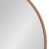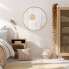 Create a beautiful wall display that takes a page out of Scandinavian simplicity with the Nordlund round wall mirror from Kate and Laurel. Inspired by minimalist aesthetics, the Nordlund mirror features a trendy, round shape and a design comprised of smooth, clean lines. Each mirror has a solid beechwood construction with a beautiful and reflective glass surface that provides a vibrant accent for any space. The overall diameter of this round mirror is 28 inches, which is excellent for creating an oversized statement on your wall. Adding a mirror to your home decor makes your space more dimensional, with the reflective glass bringing in more light and creating a more open concept. The Nordlund round wall mirror looks excellent in any modern or Scandinavian-inspired living room, bedroom, entryway, dining room, or kitchen. Its large diameter also makes it attractive to use as a bathroom vanity mirror. The sawtooth hangers securely attached to the back make it easy to hang on its own or in multiples if you choose to create a sophisticated and symmetrical wall display.