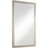 The beauty of simplicity is celebrated with this rectangular mirror design. The brushed nickel finish is contemporary with a clean look. A great choice for use over a bathroom vanity or sink.