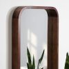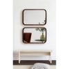 The Hutton wall mirror adds a charming modern statement to your wall while highlighting your home’s vibrancy. The design utilizes a clean aesthetic, with a radius rectangle shape that has rounded corners for a softer look. The frame also features a walnut brown finish, creating a dynamic yet transitional accent capable of blending into various decor schemes. The Hutton frame was constructed from a premium solid poplar wood, giving it a thickness and robust quality that will last for years of display. Its overall dimensions are 20 inches by 2 inches by 30 inches, making it a bold wall accent that commands attention. At this size, the Hutton mirror is fabulous as a way to enhance the vibrancy of your home, reflecting your natural light to brighten the room and make it feel more open. It looks perfect both vertically and horizontally as a decorative focal point or as a bathroom mirror over a single or double vanity. Use the metal D-ring hangers attached to the back of the frame for quick, no-hassle hanging in a matter of minutes.