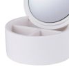 - Stylish and compact round organizer with a mirrored lid made of resin in a crisp alabaster stone like finish