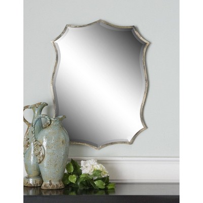 Hand forged metal frame featuring an oxidized, nickel plated finish. Mirror has a generous 1 1/4″ bevel.|Contemporary|Transitional||Silver|oxidized nickel, shaped, metal