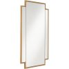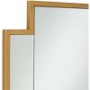 Ornate shaping lends a different look to this fashionable wall mirror, a contemporary choice for blending utility with decor. Notched edges of a rectangular frame stand out in a frame with a lush antique gold finish over MDF wood. Non-beveled glass maintains romantic simplicity. This mirror may be installed vertically or horizontally using included D-ring hangers.