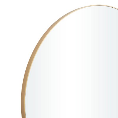 - This decorative wall mirror decor highlights a matte gold frame finish for a subtle but elegant look