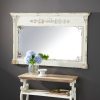 - This vintage mall mirror highlights a distressed eggshell white overall finish