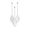 This trio of diamond shaped mirrors were inspired by the argyle patterns and can be hung separately, or in a variety of patterns. Each mirror measures 11ΒΌ x 7 x 1/2 inch ( 28.5 x 18 x 1 cm) and hangs on a 15-inch (38 cm) chain. Sold as a set of three and includes all mounting hardware. The hardware itself is part of the decor as the mirrors hang on a chain secured to the wall by a rounded knob, which looks like a charming button.