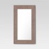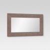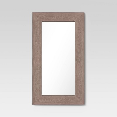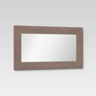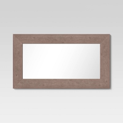 Add warmth and dimension to any space in your home with the Wide Wood Wall Mirror from Threshold™. This wall-mount mirror has a timeless rectangular silhouette, and is enclosed in a wide wood-finish plastic frame with beveled edges. You can hang this decorative mirror vertically or horizontally for added versatility and convenience. You’ll love the way it looks over the vanity in your bathroom, or in the entryway above your console while letting you adjust your hair and clothing before leaving home to start the day.