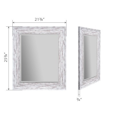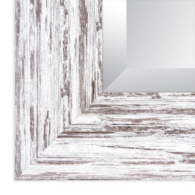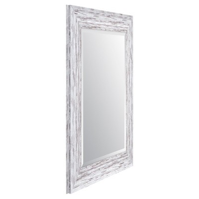 - This beveled rectangular mirror is beautifully framed in a scooped 2.8″ wide frame finished in a distressed white