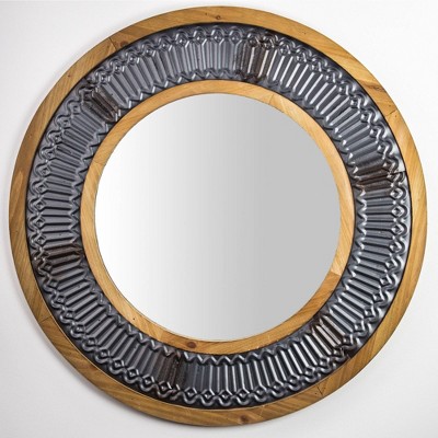 Beautiful natural wood and embossed metal combine to create a stylish, rustic, and vintage-inspired mirror for your home decor needs. Boasting a beautiful 18″ mirror display, this wonderful accent piece offers great reflective surface area as well as a brilliant focal point to any wall space that could use some added flair. The dark gray metal on this mirror has been treated with an embossed effect, giving it a captivating pattern and texture that is equally satisfying to look at as well as touch. This stylish mirror works for a variety of rooms and can be placed anywhere you want to open up and brighten a space to maximize its potential. Whether it’s for your bathroom, bedroom, living room or even kitchen, this multi-purpose mirror offers versatility in placement and purpose. Outfitted with a saw-tooth hanger on the back for easy installation, this charming piece only requires a hammer, nail, and a steady hand for set-up. Your new mirror is expertly packaged for transportation to ensure that it arrives home safe and intact.