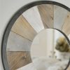 - IT’S IN THE DETAILS – This round mirror is crafted of solid wood panels with alternating light and dark brown, washed white and gray finishes, complete with a dark gray frame to give it the perfect rustic appeal.