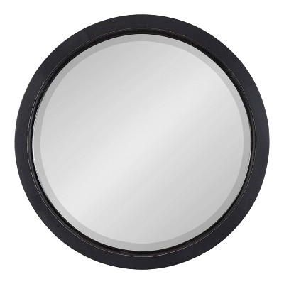Create the modern farmhouse of your dreams with this beautiful and high-quality wood wall mirror. The Hogan round mirror is a perfect display piece for creating vibrancy and dimension in your space, allowing the area to appear more open and free-flowing. This mirror has a trendy round shape with a bold distressed black finish, putting a modern twist on farmhouse style. The frame itself has a solid poplar wood composition, giving it a robust, beautiful look and high-quality resiliency for multiple years of display. The 18-inch diameter makes it a striking visual focal point for a wide range of spaces. Use it as a large vanity mirror in your master bathroom or powder room or as a decorative statement on your mantle, over a console, or paired above your favorite pieces of furniture. The Hogan mirror hangs in a matter of minutes thanks to the metal D-ring hangers that are conveniently attached to the back. This modern mirror is an excellent way to add sophistication to your farmhouse-casual decor theme.