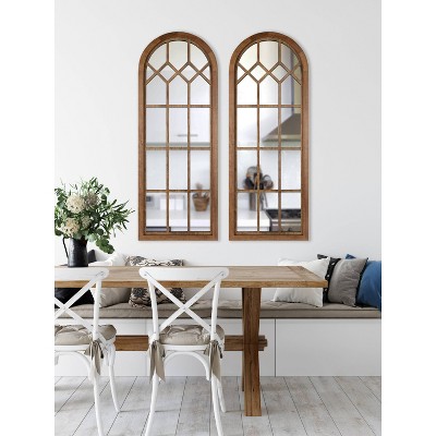 - TRADITIONAL LOOK: Inspired by farmhouse aesthetics, the Gilcrest wall mirror features a windowpane-like look, with an arched shape with a lovely wooden inlay for a decorative vintage vibe