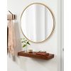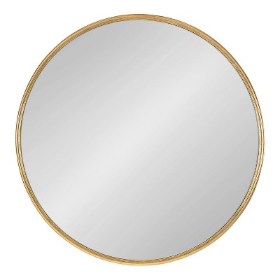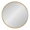 Create a decorative-yet-functional wall display with this trendy round mirror from Kate and Laurel. The Caskill mirror provides your home with plenty of light and dimension, standing at 24 inches tall by 24 inches wide for a chic, contemporary wall accent. Adding a mirror to your traditional wall decor allows your smaller spaces to appear larger, reflecting and spreading light throughout the area. The Caskill round mirror offers homeowners a chic look, featuring a refined, glam gold finish on its slim, minimalist profile. It looks excellent in any room: feature the Caskill above a bathroom vanity, over a console in your entryway, or above the mantle in the living room. It even looks beautiful as a secondary accent to your headboard in the master bedroom. Regardless of where and how you decide to use the Caskill round mirror, it offers a minimalist aesthetic with plenty of convenience. This mirror hangs in a matter of seconds with metal D-ring hangers secured to the back, making your new wall accent ready to use right out of the box.