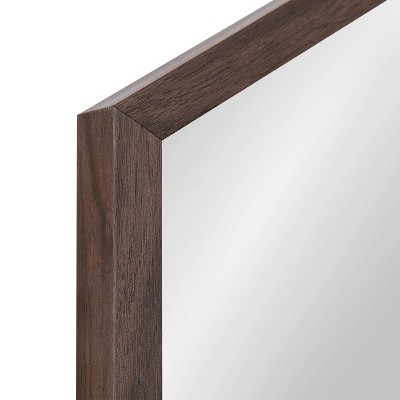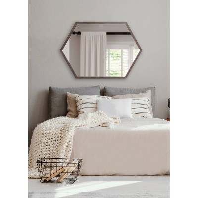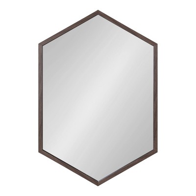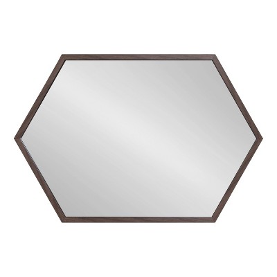 Add an element of light and dimension to your home with the Laverty modern mirror. The oblong hexagon shape and walnut brown frame create a minimalist design capable of thriving in any living space. Adding a mirror to your home decor opens up narrower spaces by reflecting light sources and spreading them across the room. The Laverty mirror is 24 inches wide by 36 inches high, making it an excellent medium-sized mirror to use as a double vanity in your master bathroom. Create a makeup and styling area in your bedroom by hanging it vertically, or hang it horizontally over a console table in your entryway. It only takes a matter of seconds to mount thanks to its lightweight frame and metal D-ring hangers pre-installed on the back. No matter how you choose to display this mirror, it’s sure to dazzle all of your guests with its clean, modern design and trendy geometric shape.