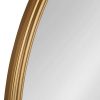 Mid-century modern glam meets modern simplicity with the all-new Chayce Round Wall Mirror from Kate and Laurel. This decadent circle mirror is the perfect statement piece to elevate your standard home decor. With its gold-finished metal frame and pendant-inspired design, this large mirror makes a powerful, modern statement for any room in your home. Each of the Chayce Wall Mirrors are 37.75 inches high by 30 inches wide, providing an oversized wall display design feature. This beautiful yet functional wall mirror is an elegant way to reflect light and illuminate the small spaces of your home. Add this modern glam circle mirror to your living room, bedroom, entryway, bathroom, dining room, or even your kitchen. The transitional design allows the Chayce Mirror to blend seamlessly into any of your wall decors. Mount this mirror in only a matter of seconds with its convenient, easy-to-use metal keyhole hangers, securely attached to the back. The Chayce Wall Mirror also ships flat and fully assembled with all hanging hardware included, so it’s ready to install right out of the box.