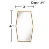 The tall hexagonal shape of this modern wall mirror is a conversation starter that is sure to impress. Its large size and slender silhouette offer a look that can tie a room together. The gold finish frame blends in beautifully with existing decor.