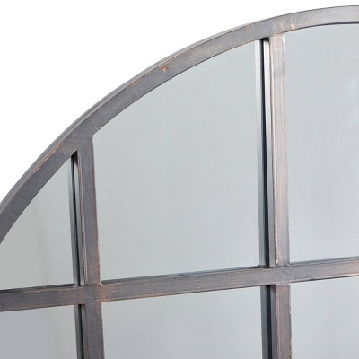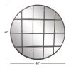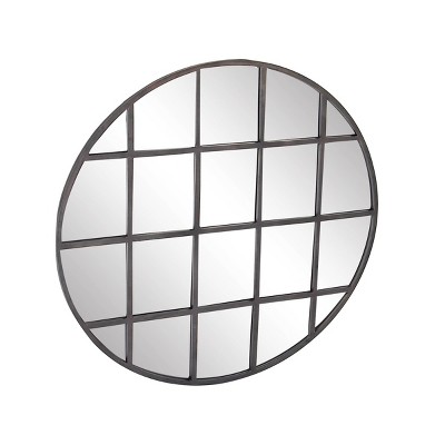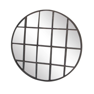 - This decorative wall mirror features a round shape with grid-like iron overlays