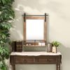 Style and purpose converge in this Wall Mount Barn Mirror with Wood Shelf and Iron Hardware from Danya B. Crafted in true rustic fashion, this charming vanity mirror and shelf features a gorgeous wooden frame made from natural pine wood. Metal caster hardware finished in bold black adds a unique industrial flair. A small shelf offers just enough space for your skin care and toiletries. You may also display this mirror in your living room or entryway as an accent piece and utilize the shelf to showcase decor or foliage instead.