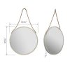 This oversized mirror lends clean, simple style with it’s nautical inspired design. Measuring 30″ in diameter, the Round Metal Wall Mirror with Rustic Hanging Rope boasts a circular frame crafted from iron in a brushed light gray with gold trim. Large porthole mirror features a natural jute 3 ply rope accent that adds ship-worthy style. Easily mounts to any wall surface with hanging rope and industrial hangers on the back for extra security. It’s clean modern style and rustic accents make it a welcome addition to any home. Add it to the living room to brighten up an empty wall space or use it in the bathroom as a unique vanity mirror.
