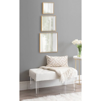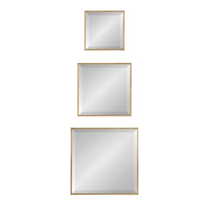 The Rhodes Modern Square Mirror Set makes an impressive addition to any room in your home. With graduated sizes and a brushed gold frame, this set is sure to bring the glam to your modern home decor. Each mirror features a beveled surface for a portrait-like, 3-dimensional quality. This set would look perfect hung in a living room or on a more narrow wall in your home. Display all three as one unit or separate them out in your home for a unified, glam decor aesthetic. These mirrors would look gorgeous in a contemporary-styled living room, bedroom, entryway, kitchen, bathroom, or any other living space that needs a bit of brightening up. The benefit of adding accent mirrors to your home is that they reflect light and illuminate your space, providing the illusion of having a more open environment. Each mirror ships flat with no assembly required, so this set is ready to mount in only a matter of seconds. Mount the Rhodes Modern Square Mirror Set on any wall with their heavy-duty sawtooth hangers.