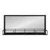 This framed mirror combines industrial chic home decor with functionality. Hang this mirror in your entryway for one last look out the door and to hold your keys, hooks, mail, or anything you need to remember as you leave the house. You can also hang this mirror in a bathroom and use the shelf for your make up our toiletries. This framed mirror is constructed of metal with a satin black finish. It arrives completely assembled and ready for use. Two metal keyhole hangers are built into the back of the frame for easy and secure wall display. The outer dimensions measure 18 inches across and 40 inches high. This multi-functional wall mirror with shelf is the perfect accent to organize to your home, kitchen, or entryway.