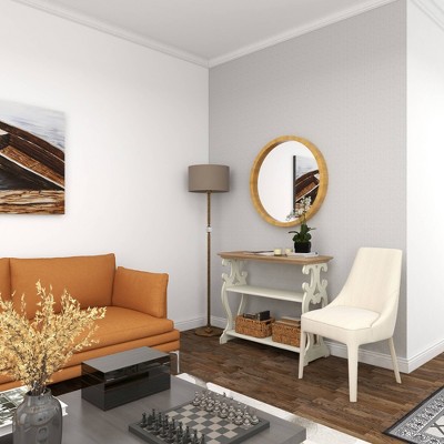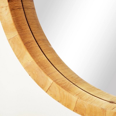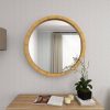 Add earthy, natural style to your space with this round wood wall mirror with natural wood grain. The frame is made from a combination of light beige Chinese fir wood and MDF wood with lots of natural texture and a smooth finish. This accent decor is ready to hang in your bathroom, bedroom, living room, or entryway by the sturdy D-ring hardware in the back. Suitable for indoor use only. Contemporary theme. This item comes shipped in one carton.