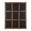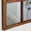 The warm hues of a rustic caramel finish convey the calm elegance of the Kate and Laurel – Hogan 9 Windowpane Wall Mirror. It’s the perfect piece to enhance and brighten a room in a beautifully understated way. The nine individually beveled mirrors within the window pane frame create the illusion of outside while maintaining the cozy warmth of the inside. Constructed of solid wood, it is classically styled and durably built. This mirror comes with four D-rings installed on the back, positioned so that it can hang horizontally or vertically. Combine two or more of these mirrors above a couch or artfully hang in an entryway – it will not only visually expand a space but will also illuminate and define making the area lighter and welcoming. A mirror like this would work well above a kitchen table drawing the eye up and creating the feeling of height or just what a bedroom needs as a unique and exciting focal point. It’s a well thought out accent piece that can transform an ordinary room into a gorgeous, luminous space. The outside dimensions are 26 x 32 inches, and each mirror within the nine panes is 7 x 9 inches. The frame profile is 1.25 inches wide, and the inside sash bars are each 1 inch wide and about 3/4 inch deep.