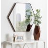 Mirrors make a wonderful display on any wall, especially when they’re featured as the central attraction. A unique shaped mirror like the Rhodes 30 x 30 hexagon shaped mirror will do just that, creating beautiful, visual interest in any room. The modern, sophisticated style has a mid-century modern flair. It’s an easy way to decorate while bringing light and space into your home. D-ring mounting hardware comes installed on the back, which will keep the mirror flat and secure wherever you hang it.