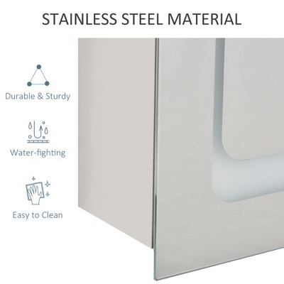 Give you a better life with this LED mirror cabinet from kleankin. 4mm thick high-definition plane mirror clearly illuminates your beauty. Smart touch control allows you to freely switch the light color and brightness to meet the makeup needs of different scenes. The stainless steel material is rust-resistant and durable. Large capacity storage is convenient for you to store cosmetics, toiletries and other daily necessities. Choose the LED mirror cabinet and enjoy a better life!