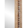 Add earthy, boho style to your space with this textural, natural wood round wall mirror with decorative wood bead trim and a whitewashed finish. The frame is made from a combination of light brown Chinese fir wood and Chinese red pine wood with lots of natural texture accentuated by the whitewash finish. Wood beads running along the rectangular frame offer added dimension and a simple, relaxed style element. Easy and ready to vertically hang by D-ring hardware in back. Suitable for indoor use only. Bohemian theme. This item comes shipped in one carton.