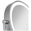 This versatile cordless vanity mirror has a brilliant satin nickel finish and all the features you need to look your best. The double sided mirror face offers standard viewing on one side and 10x magnification on the other. Its 360 degree swivel capacity allows easy positioning. An eco-friendly, energy-efficient LED light provides generous illumination and will never need replacing. Made in the U.S.A.