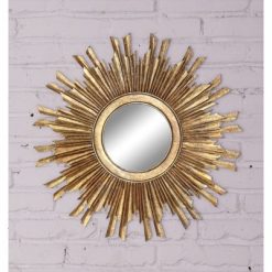 New π 35.5" Round Wood Sunburst Wall Mirror Gold Finish – 3R Studios π